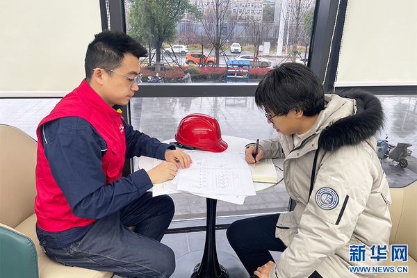 图为“鄂电红马甲”共产党员服务队队员走进米乐mile官方网站能源电气工程学院,为校企合作项目提供技术指导。新华网发