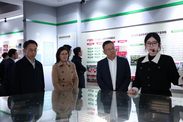 图为王敏惠(右一)讲解校史