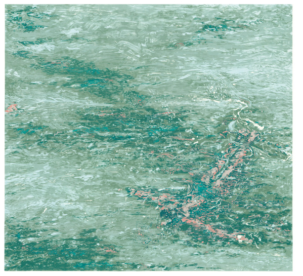 教师李婧文此次入选的作品《绿水生活》共三幅,以人与自然和谐共生为主题,通过描绘自然环境与人类行为的交互,展现人们对美好生活的向往,并深入探讨人与环境、社会之间的关系。在这一系列作品中,她运用木刻的刀痕纹理,捕捉自然界与人造环境中质朴的形态,并通过层层叠加,最终构建出一幅以时间为线索的生动图景。