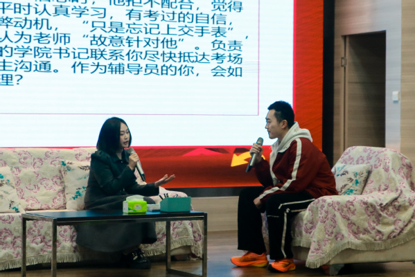 赛场上,参赛辅导员们结合各自的工作经验各展风采。在案例分析环节,选手们围绕班级学风建设、特殊学生帮扶、家庭经济困难学生管理等真实工作场景,精准剖析问题、科学制定对策,充分展现了扎实的业务功底和清晰的工作思路。在谈心谈话环节,选手们化身学生的良师益友,针对就业焦虑、家庭变故、学业迷茫等学生常见问题,耐心倾听、真诚沟通,用温暖的话语、专业的引导化解学生心结,尽显育人温度。