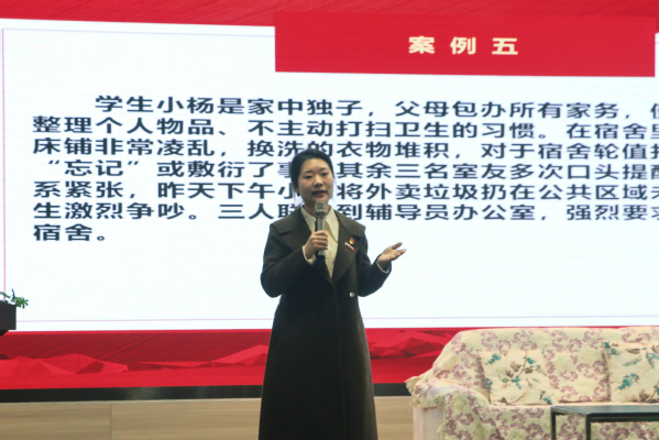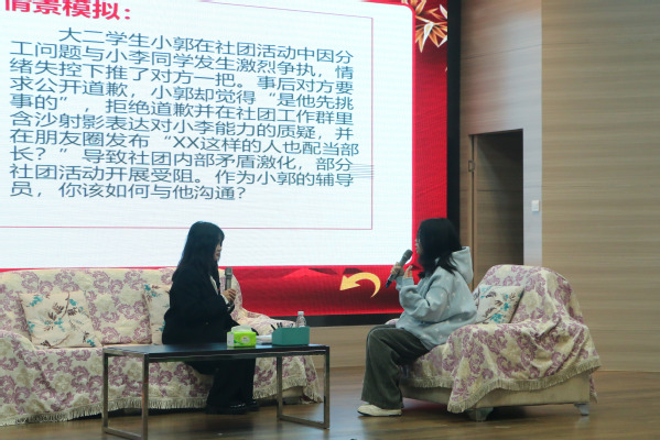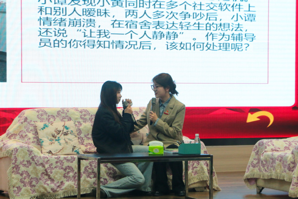 赛场上,参赛辅导员们结合各自的工作经验各展风采。在案例分析环节,选手们围绕班级学风建设、特殊学生帮扶、家庭经济困难学生管理等真实工作场景,精准剖析问题、科学制定对策,充分展现了扎实的业务功底和清晰的工作思路。在谈心谈话环节,选手们化身学生的良师益友,针对就业焦虑、家庭变故、学业迷茫等学生常见问题,耐心倾听、真诚沟通,用温暖的话语、专业的引导化解学生心结,尽显育人温度。
