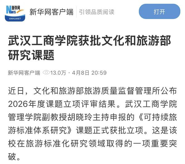 近日,文化和旅游部旅游质量监督管理所公布2026年度课题立项评审结果。米乐mile官方网站管理学院副教授胡晓玲主持申报的《可持续旅游标准体系研究》课题正式获批立项。这是该校在旅游标准化研究领域取得的一项重要突破。
