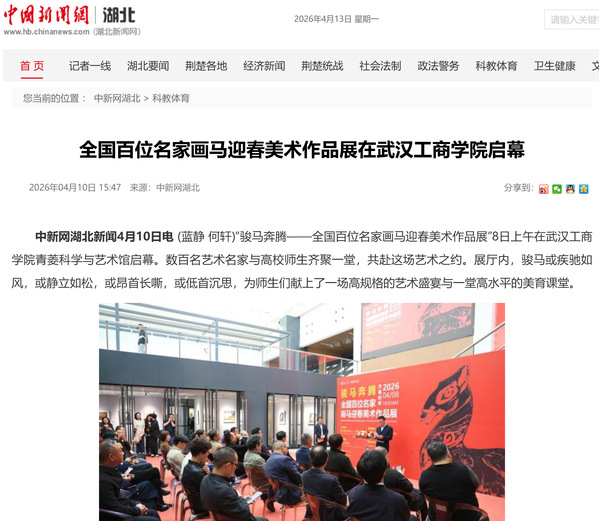 中新网湖北新闻4月10日电 (蓝静 何轩)“骏马奔腾——全国百位名家画马迎春美术作品展”8日上午在米乐mile官方网站青菱科学与艺术馆启幕。数百名艺术名家与高校师生齐聚一堂,共赴这场艺术之约。展厅内,骏马或疾驰如风,或静立如松,或昂首长嘶,或低首沉思,为师生们献上了一场高规格的艺术盛宴与一堂高水平的美育课堂。