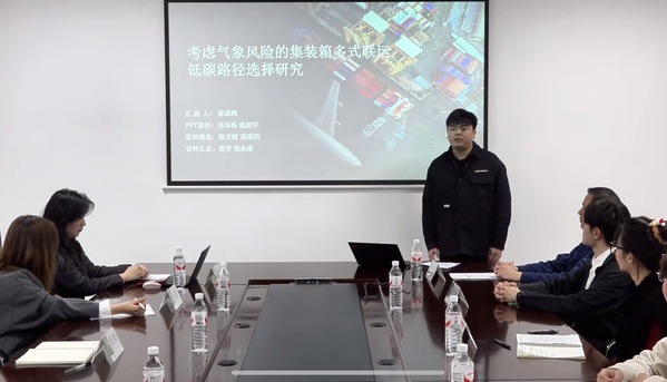 图为学生在港口的会议室进行项目成果汇报
