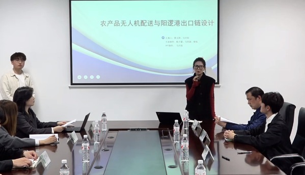 除了现场观摩,同学们还以小组为单位,围绕港口运营、物流优化、国际供应链等主题,在阳逻港内的会议室开展项目学习成果汇报。校企双师现场点评、逐一指导,从方案逻辑到实操细节,帮助同学们把零散的观察上升为系统的认知。