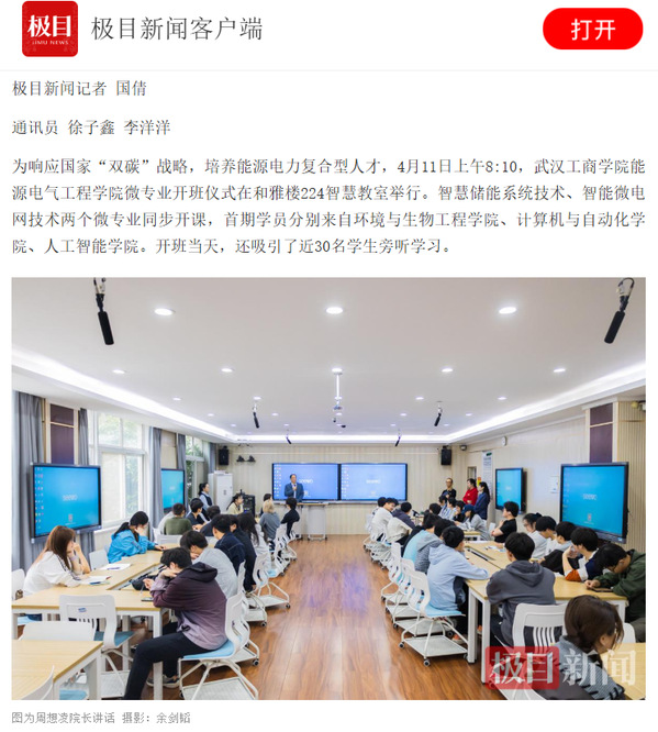 “微专业将实行产教深度融合的育人模式,推动学生知识学习与岗位能力无缝对接。”周想凌介绍,学院已与君安储能公司、国家电网、南方电网、华能集团、中国电建、中国能建等企业建立深度合作,为学习微专业的学生开辟实习实践与就业推荐绿色通道,全面提升学生实战能力。