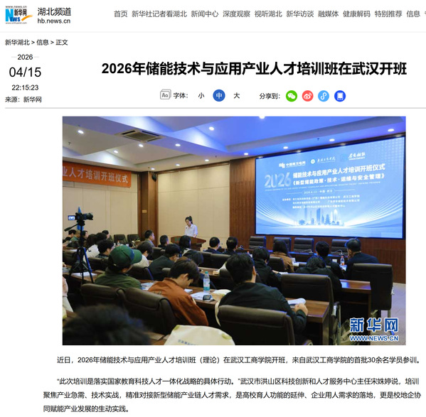 “此次培训是落实国家教育科技人才一体化战略的具体行动。”武汉市洪山区科技创新和人才服务中心主任宋姝婷说,培训聚焦产业急需、技术实战,精准对接新型储能产业链人才需求,是高校育人功能的延伸、企业用人需求的落地,更是校地企协同赋能产业发展的生动实践。