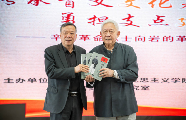 思政课结束后,向虎雏教授在现场向马克思主义学院院长张继才赠送了自己编写的《向岩纪念集》。