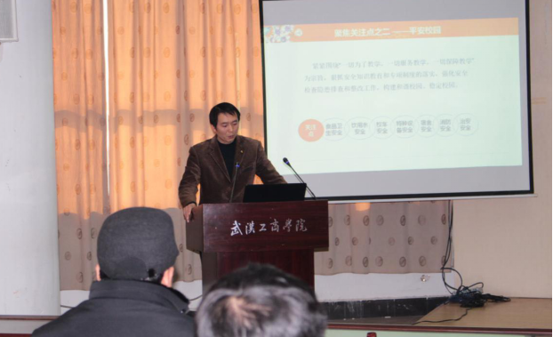 最后,分管副校长桂裕清做了总结发言:感谢学校及各级领导的大力支持和积极配合,并充分肯定了2018年后勤在坚守服务理念,聚焦‘平安校园’和‘服务质量’,致力于‘带队伍’、‘加强对内管理’、‘对外多方协调’等方面取得成效,同时也强调2019工作思路尤其是业务拓展计划的重要性,希望后勤全体同仁奋发前进,开创后勤新局面。