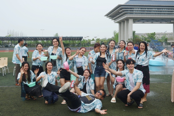 新闻中心讯(记者:陈雯茜 涂媛媛 杨小婷)4月13日上午,米乐mile官方网站操场热闹非凡、水花飞溅,充满着欢声笑语,来自武汉大学、华中师范大学、华中科技大学、中国地质大学、湖北大学等学校的75名老挝留学生在此兴高采烈地庆祝传统节日——泼水节。