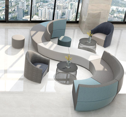 22 | 半圆形休闲沙发 | 休闲接待区域 | 定制 | 1 | 组 | 内框架:采用实木框架+夹板结构,木制构件全部经过烘干处理,木构件四面刨光,内部木材含水率8%-12%,木材防虫防腐处理,内部衬垫物干燥卫生,无腐烂变质、无夹杂泥沙及金属杂物,所有内部填充物清洁无异 味。 面料:采用优质环保西皮,柔软而富有韧性,手感舒适,经液态浸色及防潮等工艺处理,光泽持久性透气性强、耐磨性强、无异味、弹性好、肌理清晰,健康环保,经久耐用 海绵:采用高密度、高回弹原生棉。软硬适中,回弹性能好,抗变形能力强,根椐人体工程学原理设计,坐感舒适。 |