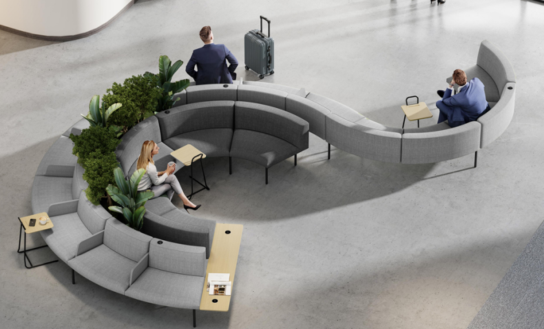 21 | 六边形圆凳椅组合沙发 | 公共区域 | 定制 | 1 | 组 | 采用西皮及麻布饰面不锈钢配件。内用40度以上高密度海绵,实木框架,弹簧扣精工制作,常规胶脚 |
