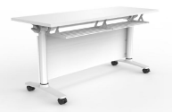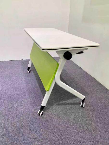 桌 | 1、桌面基材:18mm 环保刨花板,ENF 级,甲醛释放量≤0.020mg/m³,符合GB/T 4897-2015、GB 18580-2017 标准。 2、桌面饰面:三聚氰胺饰面,ENF 级,甲醛释放量 0.020mg/m³,符合GB/T 15102-2017、GB 18580-2017 标准。 3、桌面封边:无龟裂、鼓泡、变色、起皱,甲醛未检出,耐开裂性 1 级,符合 QB/T 4463-2013 标准。 4、脚架:钢制,壁厚≥2.0mm 钢管折弯成型,表面环保环氧树脂静电喷涂;管材、冲压件、涂层均无缺陷。 5、结构功能:带翻转折叠机构,脚轮带刹车,可自适应地面保证台面水平拼接,配有前挡板与多功能书报架。 参考样式: