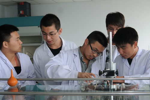黑龙江东方学院食品与环境工程学部学生正在做实验。
