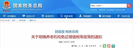 2月2日,财政部、税务总局发布《关于明确养老机构免征增值税等政策的通知》(财税〔2019〕20号),明确:企业集团内单位(含企业集团)之间的资金无偿借贷行为,免征增值税。