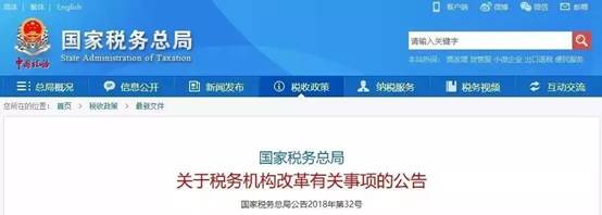 根据《关于税务机构改革有关事项的公告 国家税务总局公告2018年第32号》第六条可知: