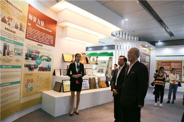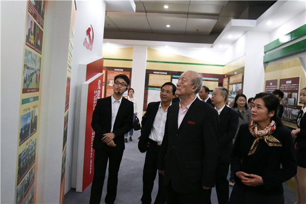 图为厉无畏参观米乐mile官方网站办学成果展 摄影:王晨杲