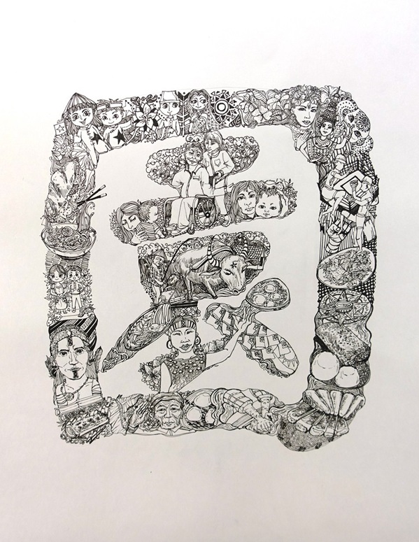 此次展览的策展人、台湾中原大学艺术中心主任陈历渝教授介绍,此次展览以台湾的多元文化背景为主题,展示了台湾、桃园的独特气质和文化底蕴。《字绘台湾》从前期筹划到创作完成历时近一年时间,初衷是以汉字为纽带,两岸青年共同创作一本字景相融,兼有汉字之美、景观之妙,生动呈现美丽宝岛的图书。他认为,书上绘的是字,读者眼睛看到的是图,透过城市、名胜、小吃、俚语等,台湾得以活灵活现地呈现。