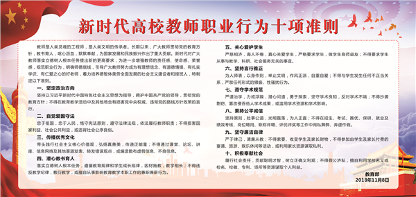 坚持原则,处事公道,光明磊落,为人正直;不得在招生、考试、推优、保研、就业及绩效考核、岗位聘用、职称评聘、评优评奖等工作中徇私舞弊、弄虚作假。