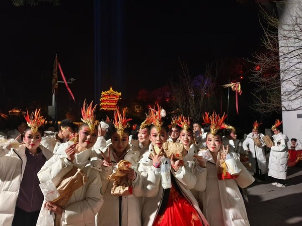 图为武工商学子参与央视春晚武汉分会场主题节目《星汉耀江城》凤凰舞蹈录制