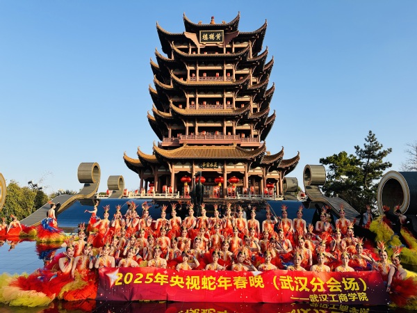 图为武工商学子在央视春晚武汉分会场节目录制现场合影