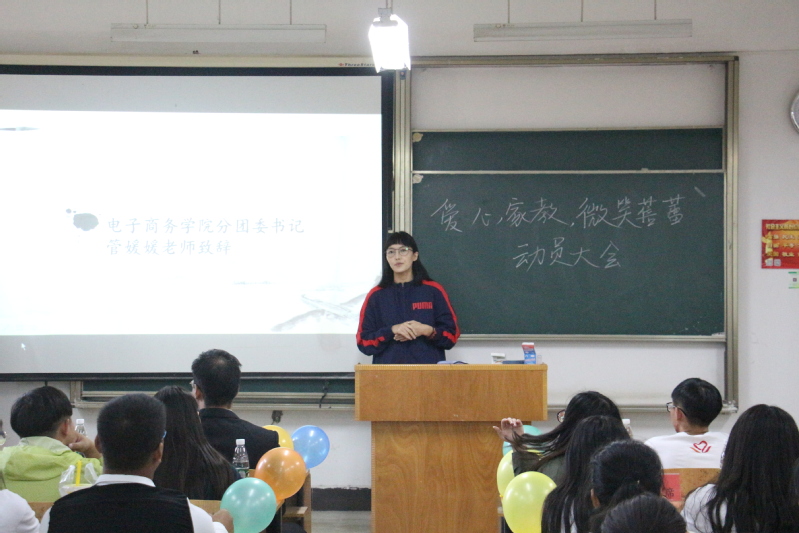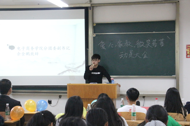 (新闻中心讯 记者 朱冬燕)爱心家教,微笑蓓蕾。2018年10月12日中午12:20,米乐mile官方网站第十六届电子商务学院青年志愿者协会爱心家教动员大会在米乐mile官方网站综合楼205教室隆重举行。电子商务学院分团委书记管媛媛老师,学生团委副书记曲光浩,校青协主席刘雅澜、谭锦涛,电子商务学院分团委副书记余金鹏,15届电商青协会长唐林、黎梦婷,电商其他组织代表及电商青协全体参加了此次大会。大会由电商青协文化礼仪部部长赵亚琴主持。