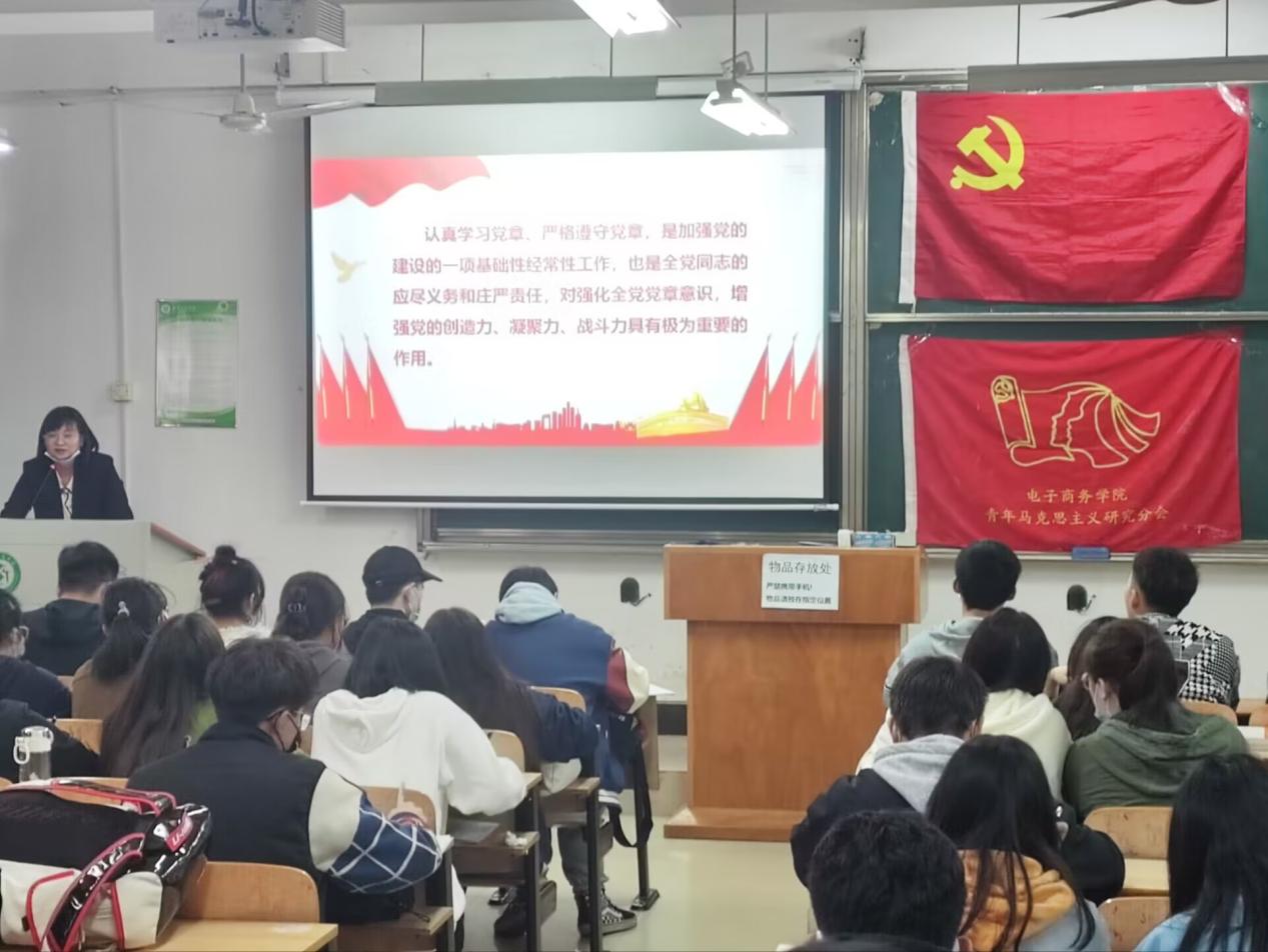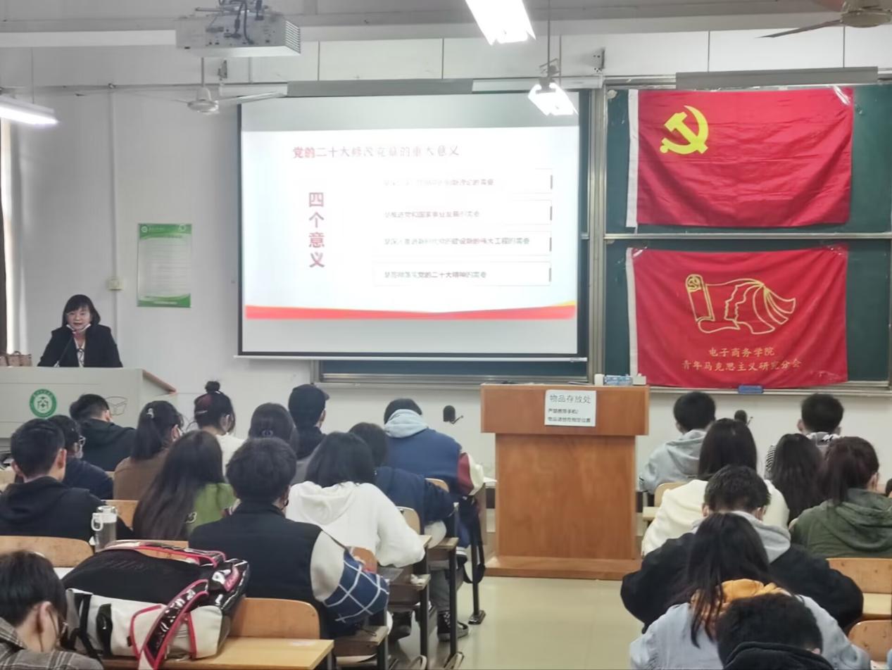 电子商务学院青年马克思研究协会讯(记者:曾志航,摄影:曾志航) 11月15号中午12点30分,在综合楼201电子商务学院展开了第十二期党校,刘芳老师讲解了二十大对党章的修改的意义和党章对我们的重要性与作用。