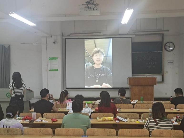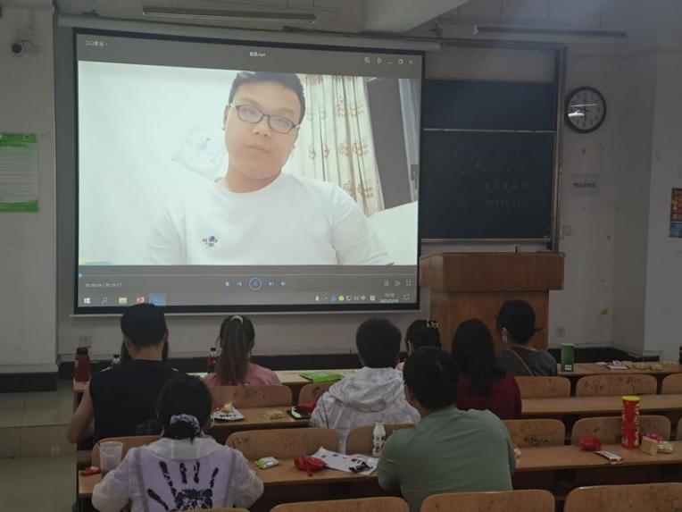 最后发言的是李翔翔,他主要分享的是两个词“心态”、“规划”。他首先介绍到自己大学担任的一些组织干部,这些不仅可以丰富人际关系、提高组织能力和一些工作能力,还可以丰富自己的大学生活。他介绍到自己曾经想考研的计划,想考日语证书,但是考了2次都是差几分,最后由于时间关系,也觉得这条路可能不太适合自己,最后将考研计划搁置了。他又介绍到自己曾经和小伙伴一起开了一家甜品店,但是由于运营问题和团队协调问题以失败告终。他也和合伙人一起打算创办公司,但是也是由于种种原因没有继续下去,当时的他觉得自己当时挺失败,觉得自己一无所获,但是通过和辅导员沟通,他也找到了适合自己的方向和道路。他告诉我们一定要有规划,不管最后是否成功,我们也可以从中学习很多东西,只要有规划就是成功的。视频最后分享他工作中和同事有趣的聊天记录,分享了自己的工作。