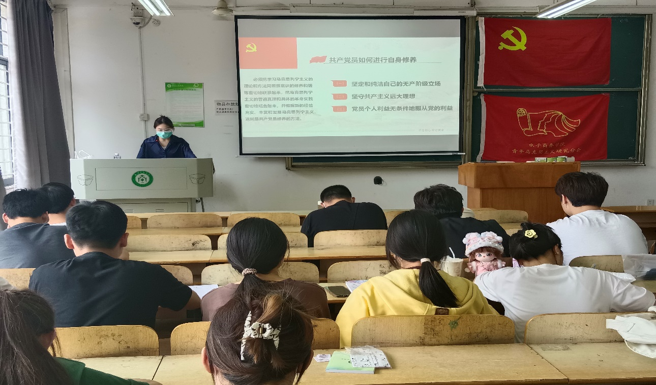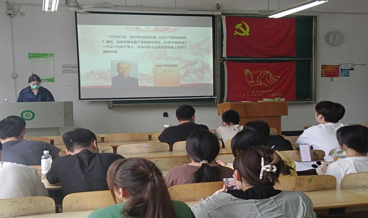 电子商务学院青年马克思主义研究分会讯(记者:杨心如,摄影:杨心如) 5月25日中午12:30,在综合楼203电子商务学院第十四期党校第三讲,电子商务学院郭人瑞老师给党校同学讲解共产党员的修养。