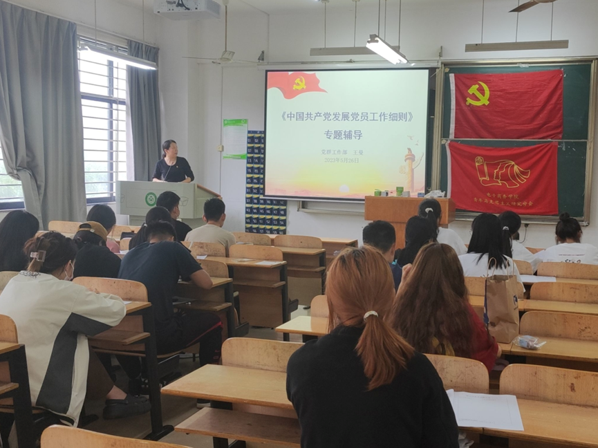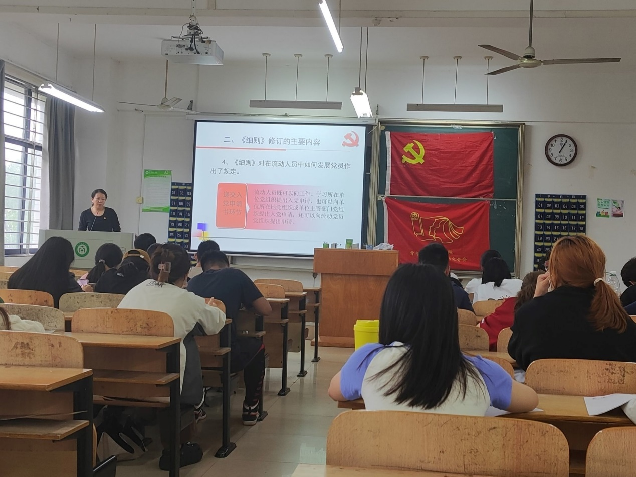 新闻中心讯(记者 赵加敏)2023年5月26日中午12:30,在综合楼205教师开展第十四期党校第四讲,主要由王曼老师给参加党校的同学讲解中国共产党发展党员工作细则。