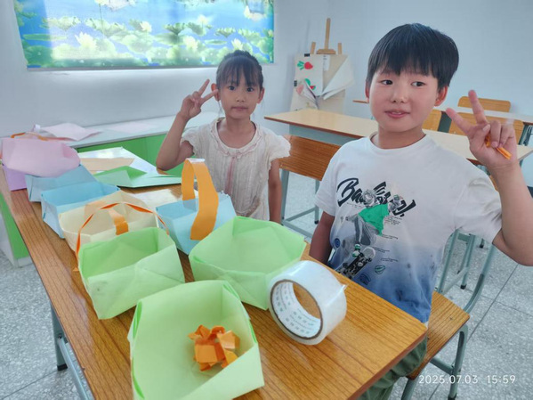 据悉,今年的托管班在课程设置上进行了全面升级,除常规课业辅导外,新增了非遗传承、STEAM教育等特色课程。开班首日,谢店村的七彩树制作和花湾村的创意折纸课程就深受孩子们喜爱。三年级学生金贝贝举着刚完成的手工作品兴奋地说:哥哥姐姐们教的手工太有趣了,我要把作品送给在外打工的爸爸妈妈。