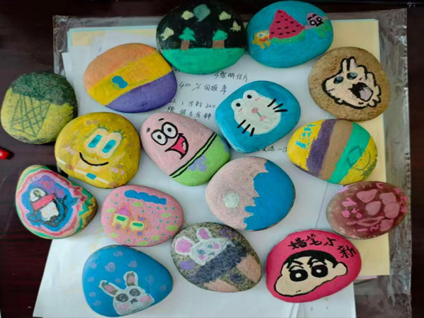图为孩子们的创意石头画汇总 摄影:丁磊