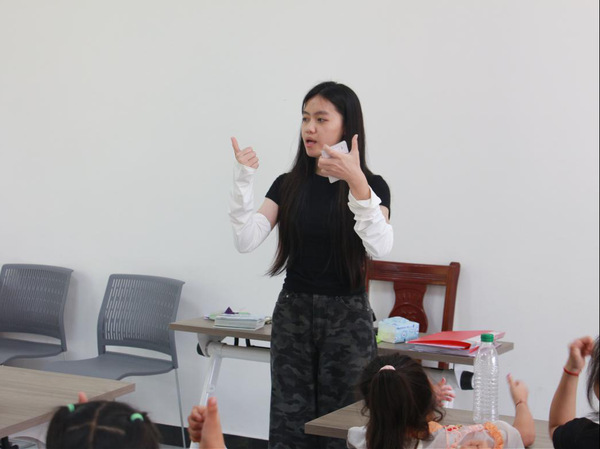 图为手势舞课堂志愿者教学场景摄影:郭怡含