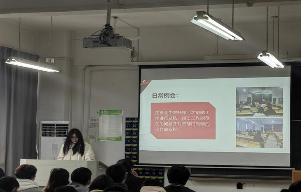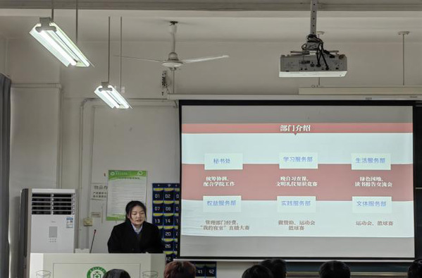 最后,电子商务学院杨睿老师对各部门的工作予以肯定并鼓励各部门积极组织活动,对大家表达了殷切的希望。
