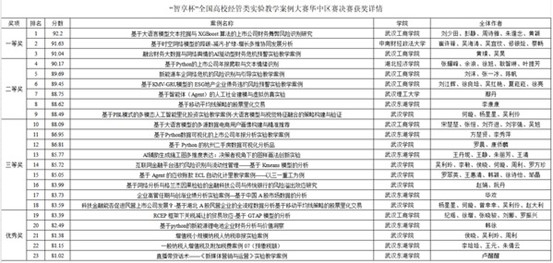 图为“智享杯”全国高校经管类教学实验案例大赛华中区赛决赛获奖情况
