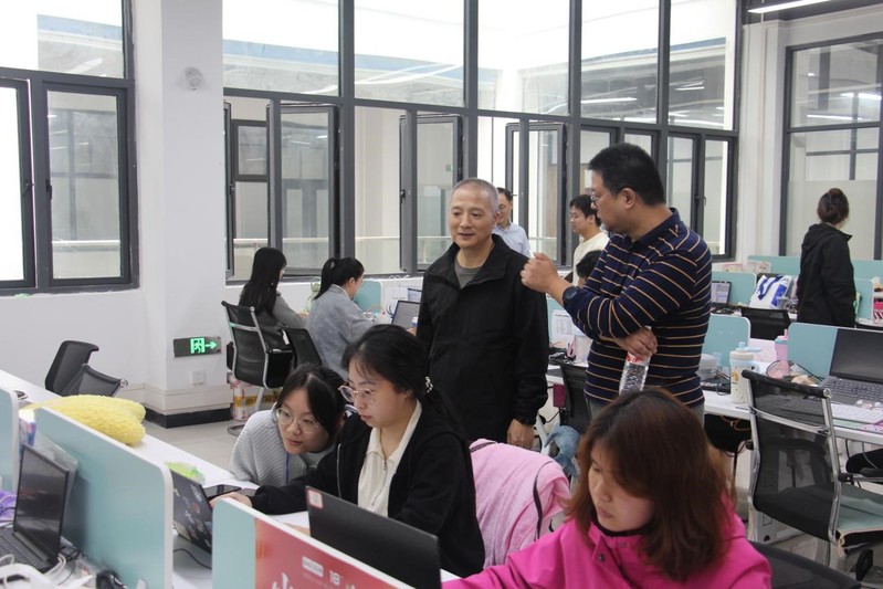 图为领导老师走访实习生工作场地 摄影:李美霖