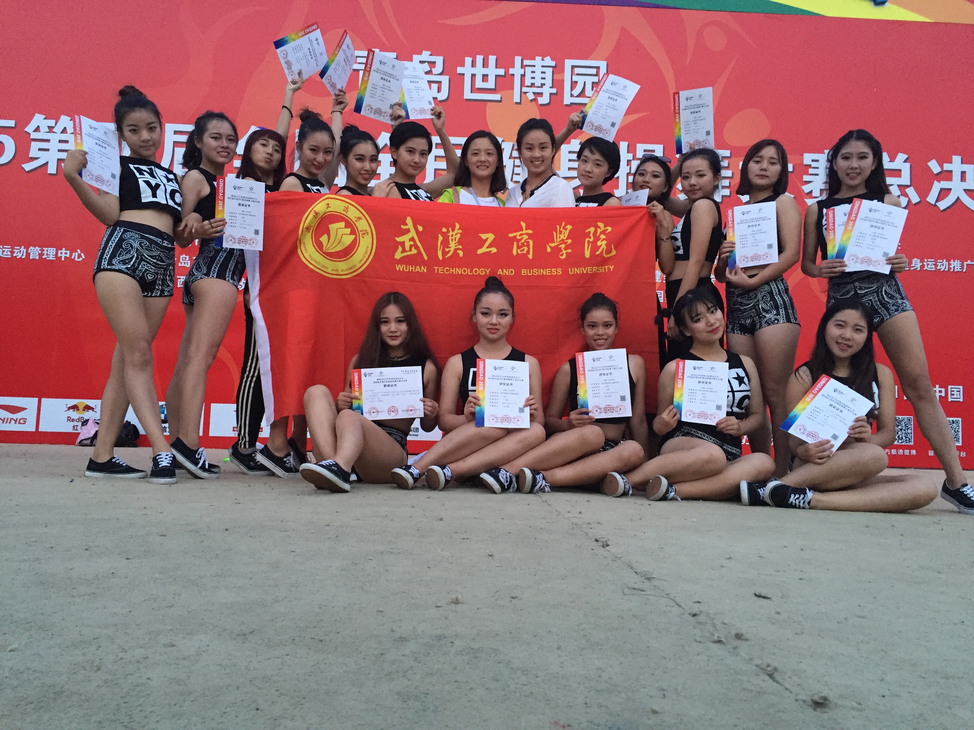 图为我院健美操代表队和教练 照片提供:张玉杰