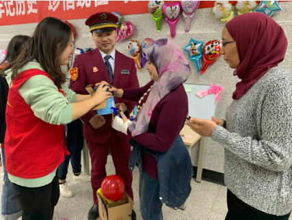在活动筹备时,志愿者们不怕辛苦劳累,跪在地上布置场地,充分体现了当代大学生吃苦耐劳的精神;在筹备宣传活动时,志愿者们脑洞大开、创意新颖,生动展现了工商人的创新精神;在参与整个活动过程中,志愿者们帮助国际友人,更充分体现了工商学生的素质,他们口语流利、自信满满,来往的行人看到都不禁竖起大拇指。