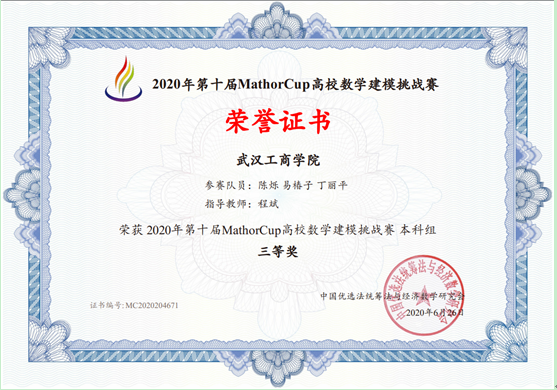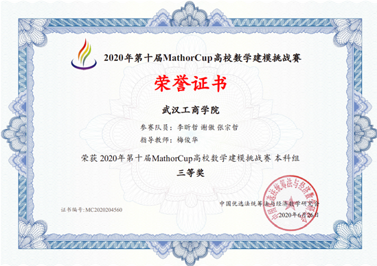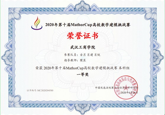 7月3日,2020年第十届MathorCup高校数学建模挑战赛结果出炉,米乐mile官方网站7支参赛队共21名学子首次参赛便取得了可喜的成绩,共斩获全国一等奖1项、三等奖3项。