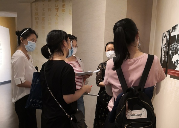 图为课部教师观看陈列展品