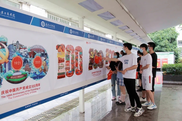 (通讯员 李枥霖)7月1日下午,由思政课部党支部和思政课部举办的七一礼赞画展活动在艺术楼中庭拉开序幕。2021年恰逢中国共产党建党100周年,为了铭记党的历史,讴歌党的光辉历程,发扬党的优良传统,让“四史”教育走心走实,根据习近平同志在“党史学习教育动员大会”上的讲话精神,思政课部党支部与思政课部在本学期依托两门课程《中国近现代史纲要》和《毛泽东思想和中国特色社会主义理论体系概论》举办特色实践教学活动。