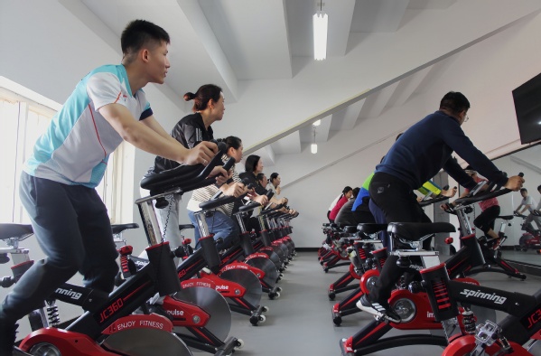 为丰富广大教职工的业余文体活动,吸引教职工参与体育健身,推动全民健身活动的深入开展,积极倡导健康、环保、向上的生活理念,3月30日中午,公共课部联合校工会在体育运动中心开展了“动感单车 骑乐无穷”健身活动。
