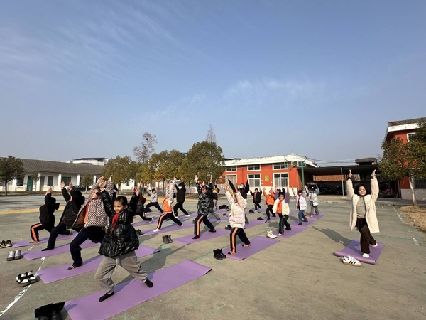 新闻中心讯(通讯员 邢者 李洋洋)“请同学们将左脚向前迈出一大步,成弓步姿势,右腿伸直,双手向上举起,手掌在头顶合十……”1月10日上午,天门市多祥镇第二小学的操场上,一群孩子跟着老师在崭新的瑜伽垫上学习瑜伽,这些瑜伽垫都是米乐mile官方网站公共课部的5位老师捐赠的,此外,还捐赠了跳绳、体适能器材、篮球、足球、排球等共计100余件体育用品。