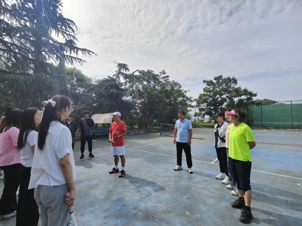 新闻中心讯(记者 邢扬埼)为深化体育教学改革、推广创新教学方法,6月12日上午9时,公共课部大学体育教研室精心组织了一场主题明确、内容丰富的教学示范课。本次课程以网球核心技能——正手击球技术为切入点,由大学体育教研室网球教师刘涛主讲,吸引了十余名无教学任务的体育教师现场观摩学习。