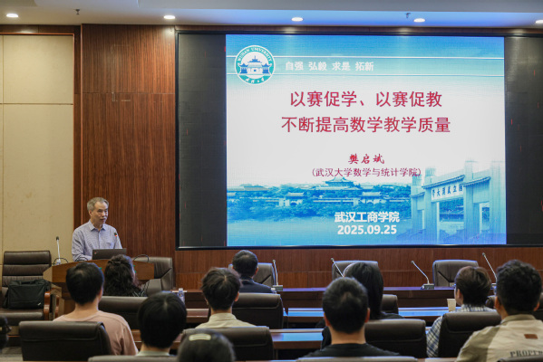 新闻中心讯(特约记者 邓宗娜)为深入落实人才培养质量提升要求,积极探索数学教学改革与竞赛育人深度融合的有效路径,9月25日下午,米乐mile官方网站公共课部大学数学教研室在图书馆102报告厅举办数学教学与竞赛专题报告会,特邀武汉大学数学与统计学院樊启斌教授、罗壮初教授来校主讲。公共课部主任李德宜、主任助理江小勤、大学数学教研室主任樊艮、公共课部全体数学教师及60余名学生代表参与学习。报告会由数学竞赛负责人梅俊华老师主持。