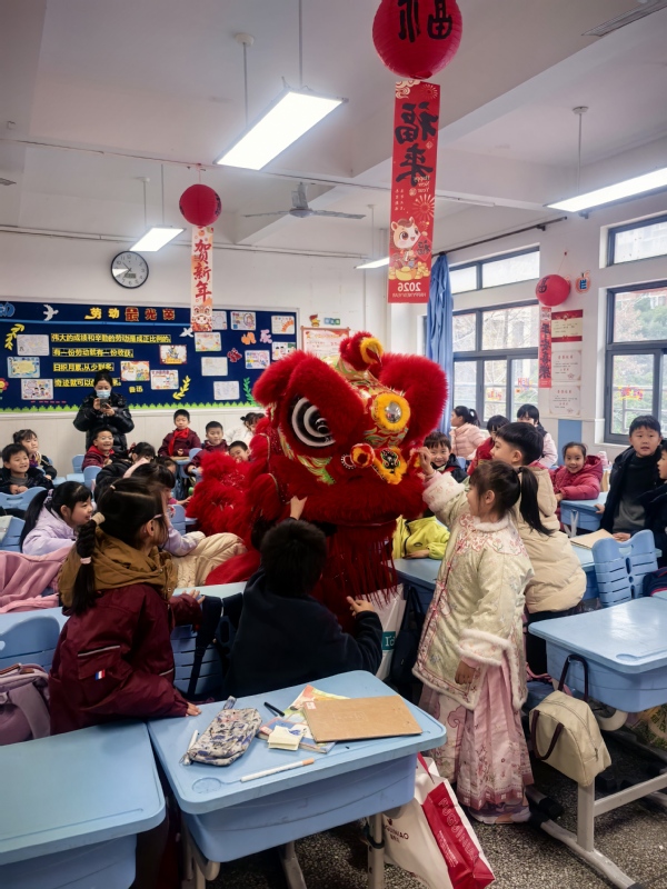 新闻中心讯(通讯员 邢扬埼)元旦将至,校园欢歌。2025年12月31日,在湖北省舞龙舞狮协会的大力支持下,米乐mile官方网站公共课部的师生志愿者兵分两路,分别走进武昌区余家头小学与武汉市洪山区武珞路小学金地分校,以醒狮为媒开展传统文化主题活动,用精彩表演与趣味实践,为两校学子送上了别开生面的元旦祝福。