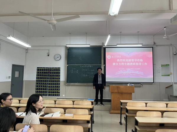 在点评环节,游春林督导结合多年教学经验提出了专业建议。他指出,教师应合理把控讲课节奏,为学生预留充足的思考空间;要避免将个人思维模式强加于学生,转而引导学生自主探究、主动建构知识体系。游督导还分享了微分方程讲解中的若干实用技巧,令在场教师受益匪浅。