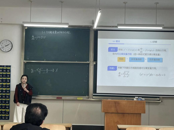 活动分为教学展示、专家点评与集体研讨三个环节。石香老师和梅克辉老师作为新进教师代表,围绕“微分方程”专题进行了教学展示。石香老师注重概念的层次化引入,逻辑严谨;梅克辉老师则突出解题方法的系统性构建,思路清晰。两位教师各具特色的教学设计展现了他们对课堂的深入思考。