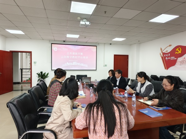 新闻中心讯(撰稿人 邓宗娜)为深入推进数字教材建设,提升教师数字教学资源开发与应用能力,4月3日下午,公共课部在弘德楼938会议室举办高等教育出版社云创数字教材平台专题培训。公共课部主任李德宜、副主任李晶、江小勤,大学数学教研室副主任黄益、邓宗娜,拟申报数字教材建设的课程负责人及成员,教务部教材科龚珊珊老师等参加培训。