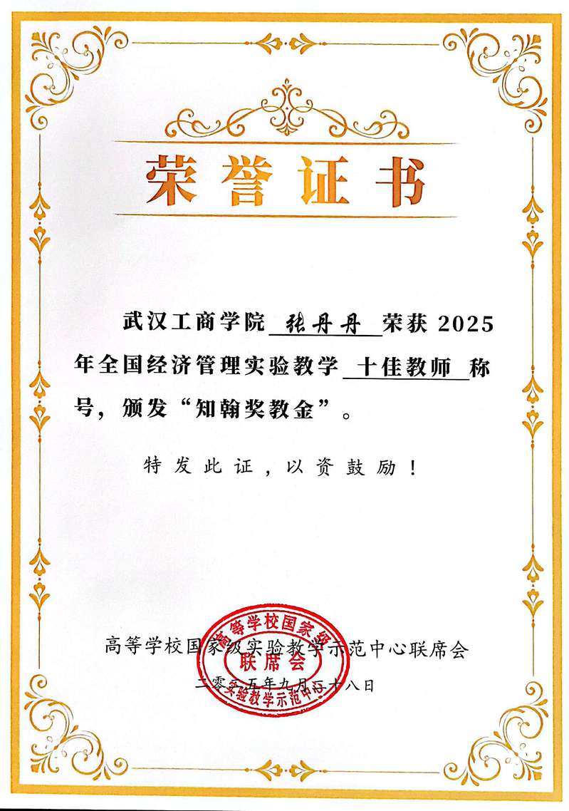 张丹丹副教授获评2025年“全国经济管理实验教学十佳教师”